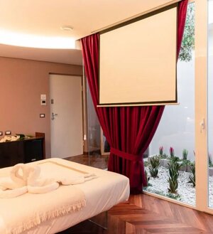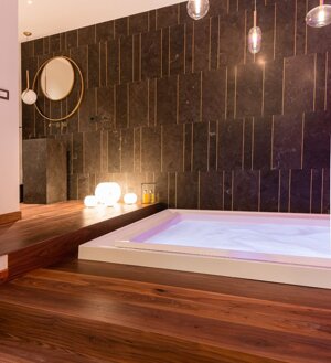 La nostra suite vi permetterà di rilassarvi alla fine dell’evento, con vasca idromassaggio e giardino indoor.